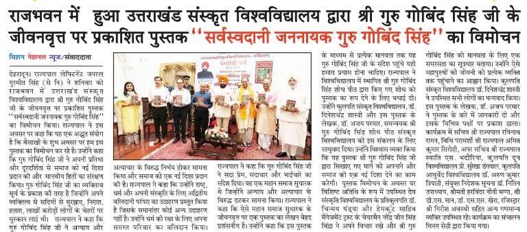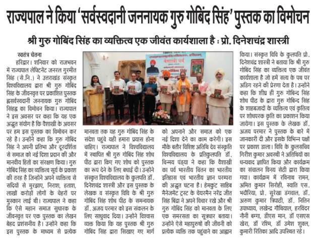 | मा. राज्यपाल महोदय द्वारा 'सर्वस्वदानी जननायक गुरु गोबिंद सिंह' पुस्तक का विमोचन (1३ अप्रैल, २०२४) |