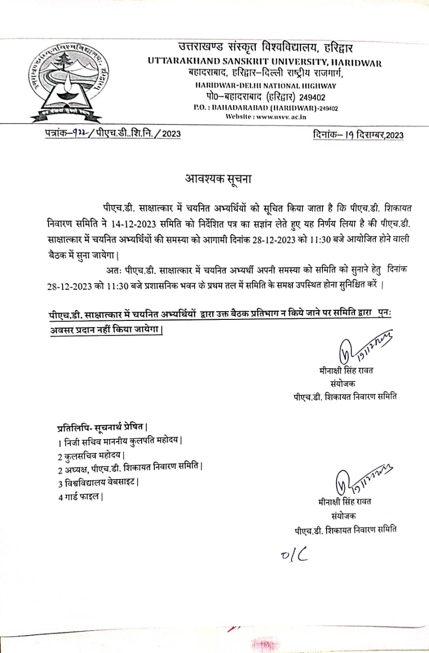 पीएच. डी. प्रेवश परीक्षा 2023-24 हेतु काउन्सिलिंग एवं साक्षात्कार / मौखिक परीक्षा सूचना