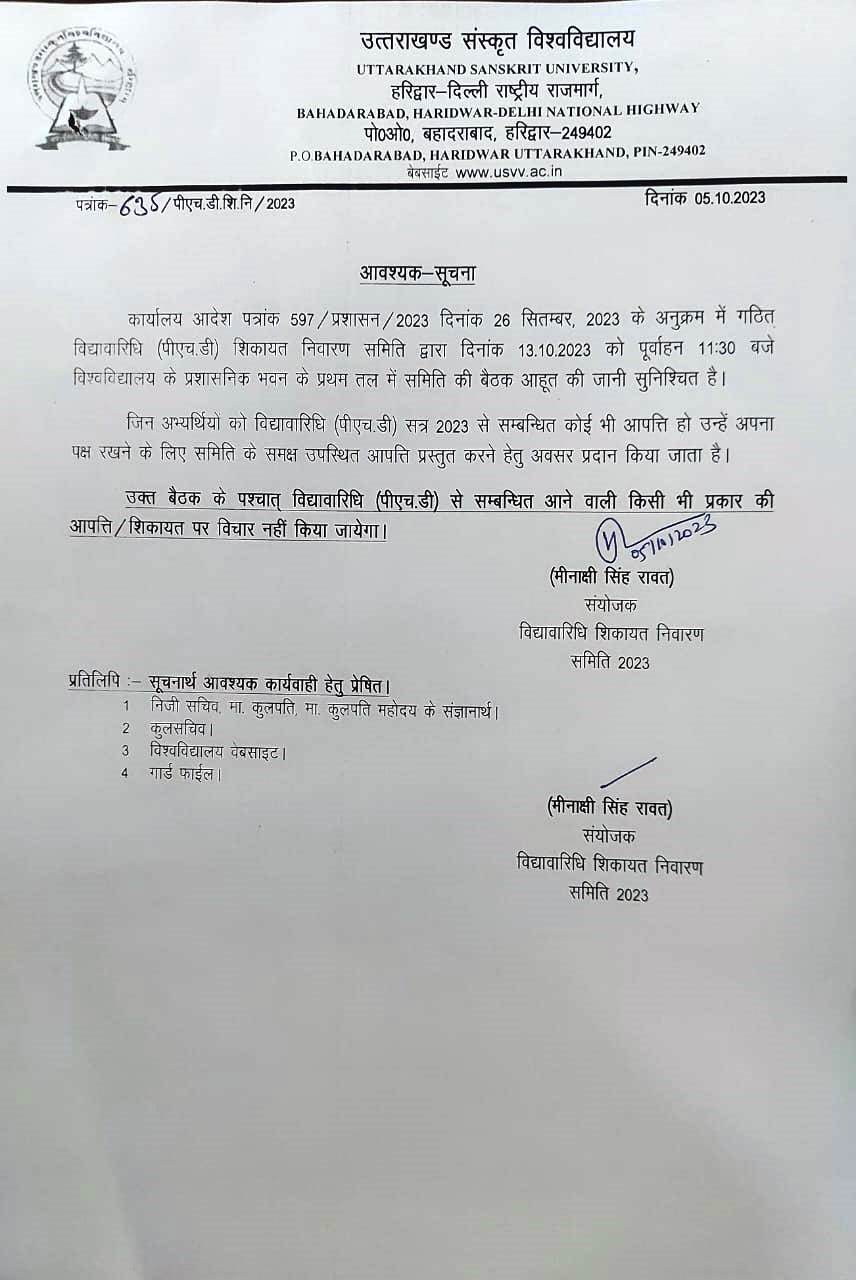 पीएच. डी. 2022-23 के सम्बन्ध में आवश्यक सूचना
